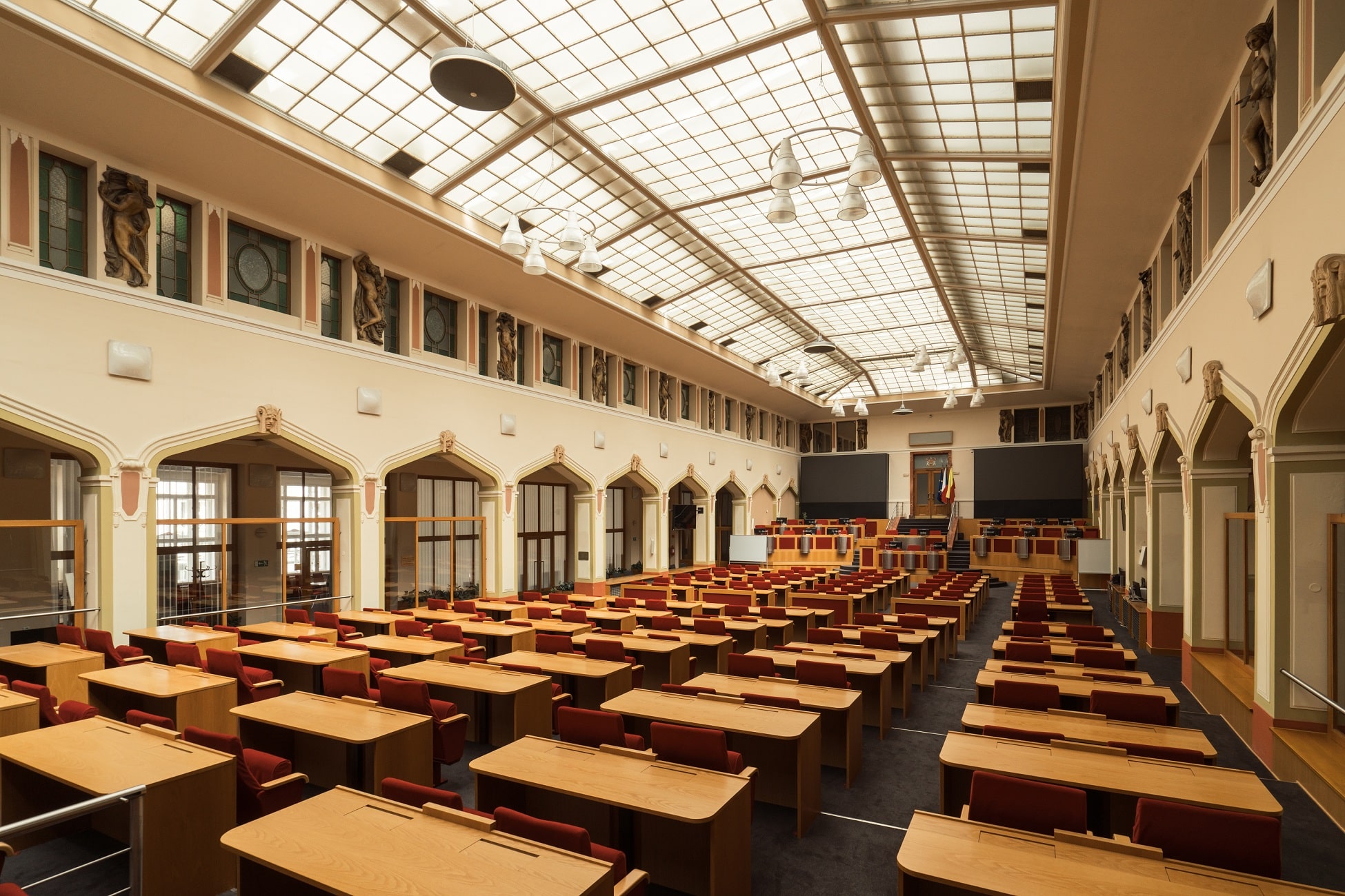 For TROJMUN 2025, we are honored to host part of the conference at New Town Hall (Nová Radnice), a landmark of governance and history located on Mariánské náměstí in the heart of Prague. Serving as the seat of Prague’s City Hall, this building has witnessed key moments in the city's political life and stands as a symbol of civic leadership. Built in the early 20th century, Nová Radnice is a striking example of Neo-Renaissance architecture, featuring grand facades, ornate interiors, and an impressive assembly hall. The building’s architectural elegance, combined with its historical significance, provides a distinguished setting for our closing ceremony and general assembly.
